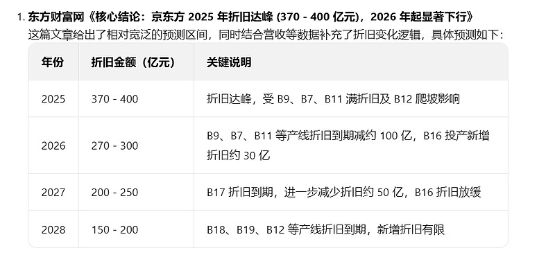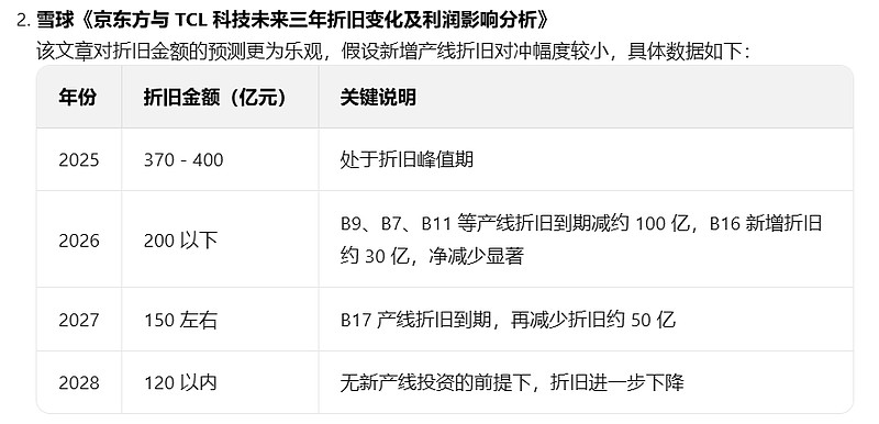 有每条产线的投资数据和折旧政策,理论上可以做一些计算,但是确实很枯燥,我还是偷懒了,让AI帮我找了网上的计算,显示如下:
