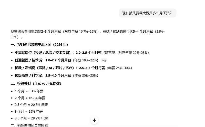 我记得以前猎头费用等于招聘员工6-12个月的工资,现在好像下降了很多,只要2-3个的月薪做猎头费。
