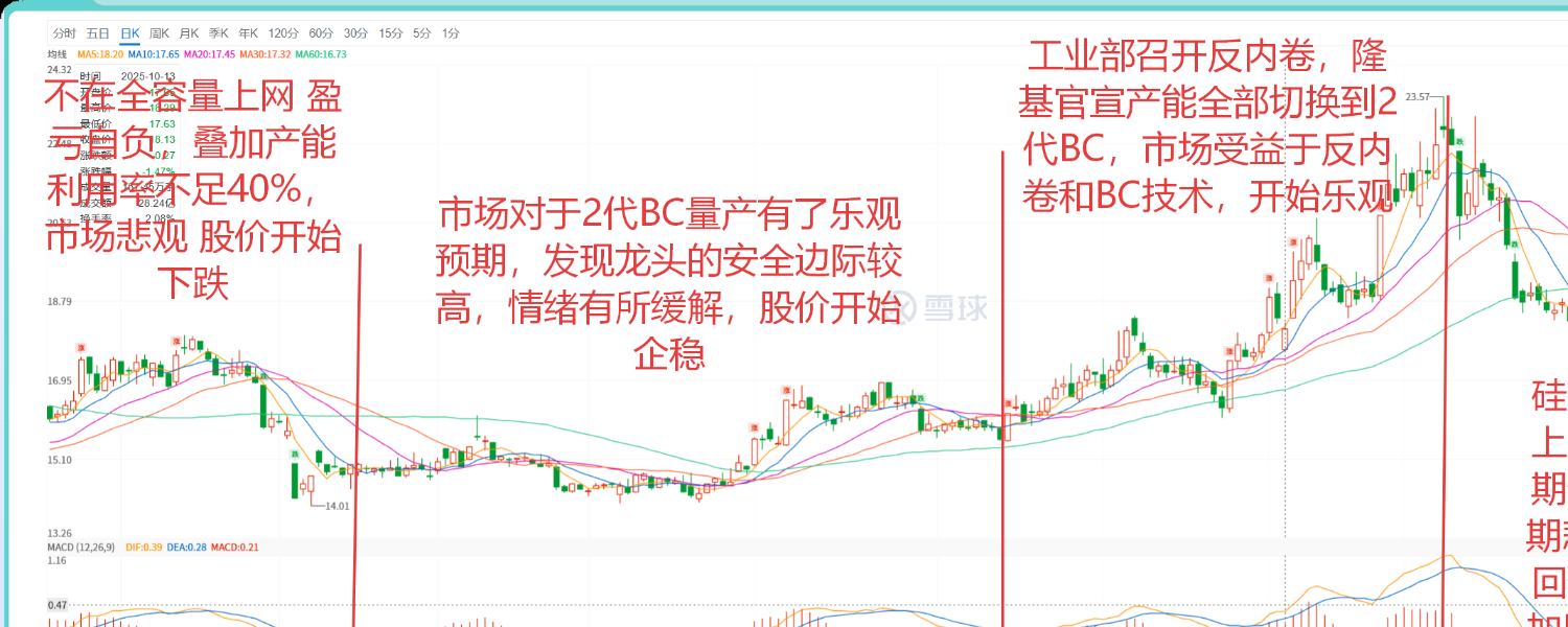 年报的预告已经出了,通威预计亏100个,隆基65个 , 现在的光伏组件是真的难啊 ,前有银浆暴涨 后有产能过剩 需求不足 ,还有不断提高的组件寿命 都让我忧心不断 啊,好在底部的信号逐渐清晰 ,亿晶光电 资不抵债 可能要退市,希望再来一刀政策坚定破除地方保护,斩断地方输血 ,加速暴力出清 光伏才会真正的迎来曙光! 我将执剑守候,直至清晨的第一缕阳光爆射黑暗的夜空 !#隆基绿能# #通威股份# #晶澳科技#