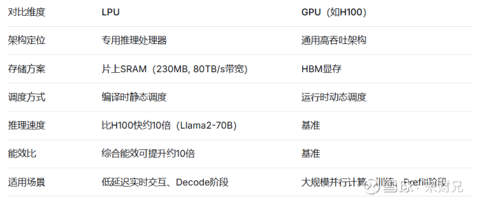 与追求通用计算能力的GPU不同,LPU针对语言模型推理的确定性与低延迟特性进行了专门优化,其结构性优势主要体现在低时延或具有人机交互属性的代理AI场景。