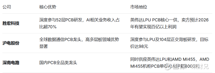 产业链层面:LPU采用52层M9级覆铜板+Q布方案,单芯片PCB价值量约3000元,单柜PCB价值量达45-70万元。这一规格跃升推动PCB产业链从用量到单价迎来倍数级增长,并向上游特种材料及精密加工环节扩散。