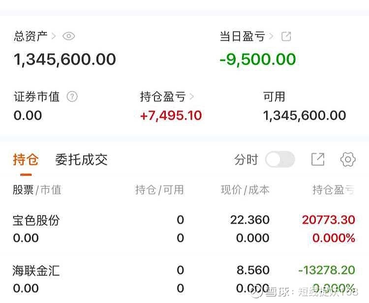 $海联金汇(SZ002537)$$宝色股份(SZ300402)$ $300402宝色股份,出局002537海联金汇,出局休息几天,有点累,下周再看看,免声明:发帖只是记录个人的操作,分享自己的选股的思路,和执行操作计划过程中有坚持自己的操作原则,不作为任何投资的依据。