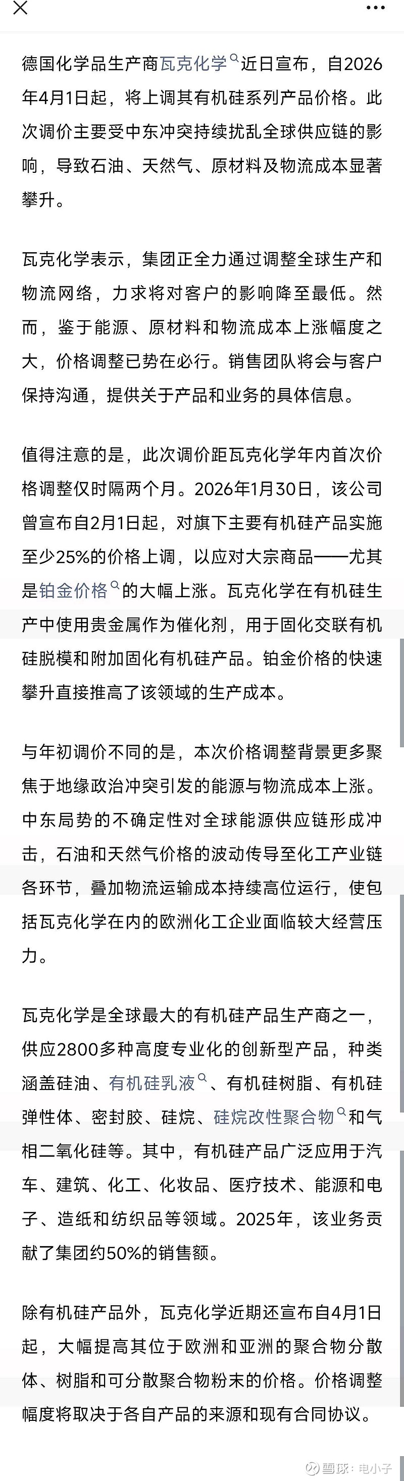 中东冲突推高能源与物流成本,瓦克有机硅产品年内再度涨价
