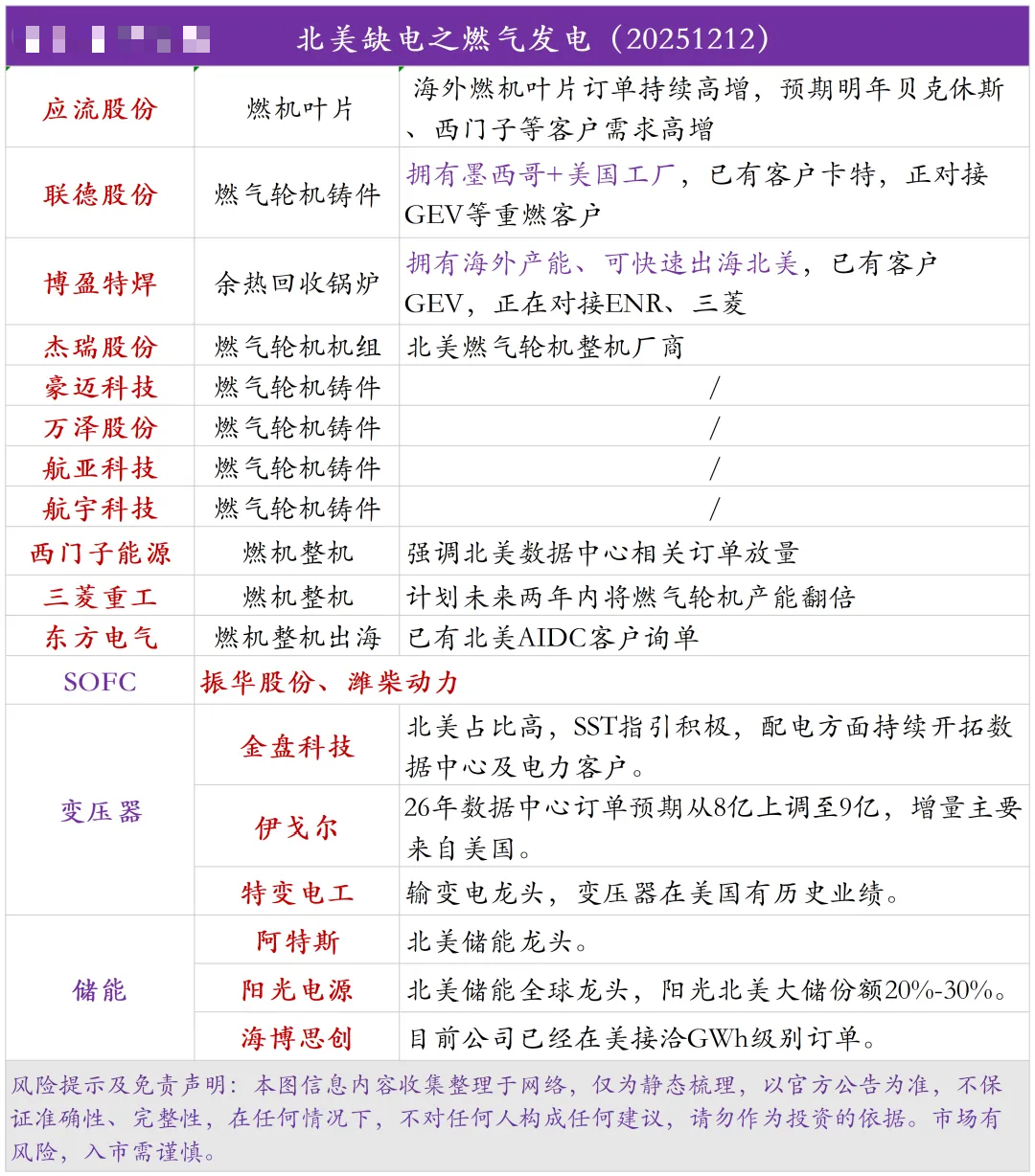 中小燃机配套链:应流股份(贝克休斯)、航宇科技(贝克休斯)、 联德股份(索拉)、飞沃科技(西门子、GEV)。