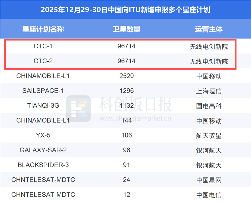 据国际电信联盟(ITU)官网显示,2025年最后一周,我国向ITU申报了多个卫星星座计划,申报总规模超20万颗。