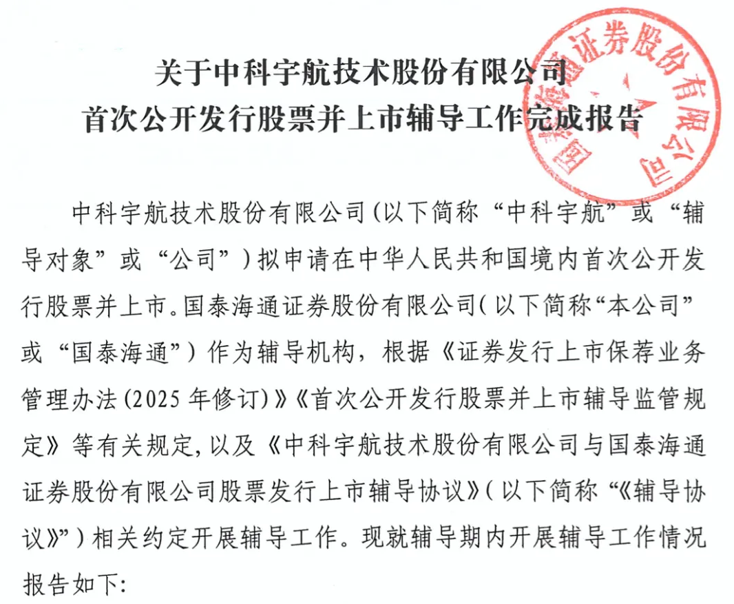 据公开发行辅导公示系统显示,中科宇航于近日辅导工作完成。