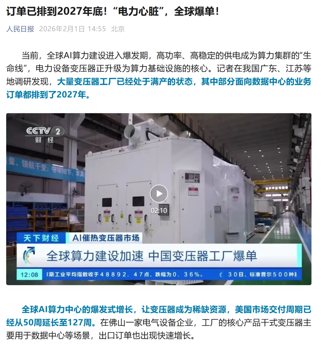 订单已排到2027年底,“电力心脏”,变压器全球爆单!