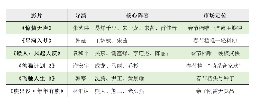 春节档票房预期优先级:飞驰3>镖人+惊蛰无声+熊猫计划>其他。