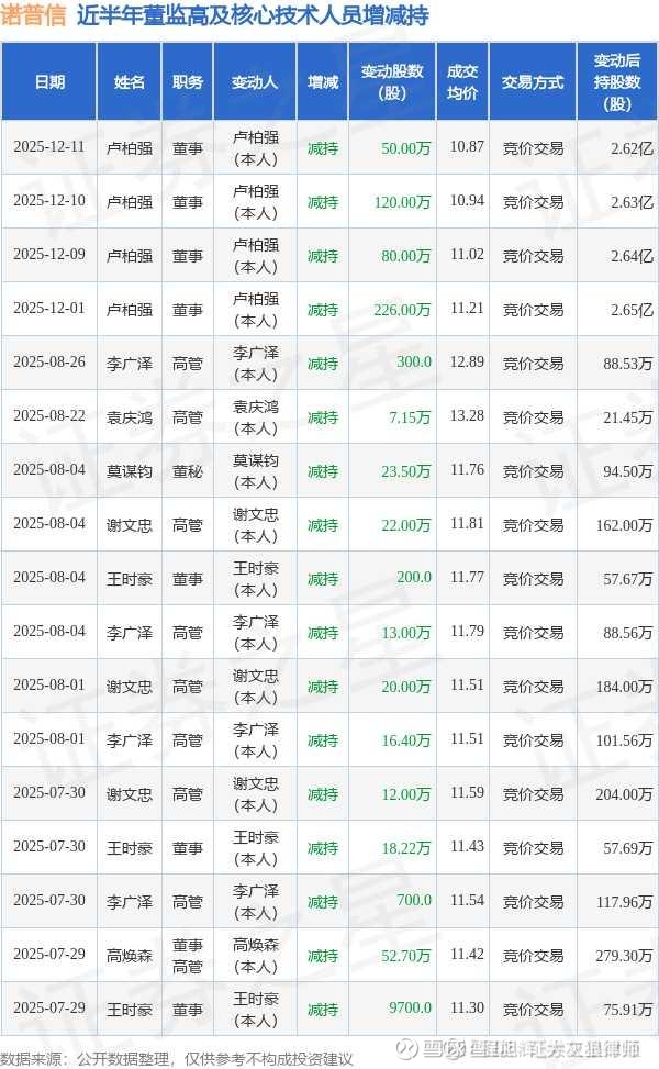 11.8减持209.69万股,成交均价11.63元/股12.1减持226.00万股,成交均价11.21元/股12.9减持80.00万股,成交均价11.02元/股12.10减持120.00万股,成交均价10.94元/股;12.11减持50.00万股,成交均价10.87元/股目前通过集合竞价方式共减持685.69万股,不考虑12.12减持和其他三个一致行动人账户减持,尚有314.31万股待减持。估计下周就卖完了$诺普信(SZ002215)$查看图片