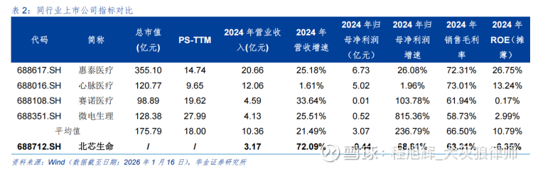688新股上市估值一般来说肯定高估。但考虑到北芯的产品商业化阶段,未来几年也会保持高速增长。若在过去3年营收复合增速80%下,预估2026年营收增速为60%计8.64亿,则以26年预计营收估算,按照今天市值168亿,北芯生命的ps已经降低到19.44,和行业ps均值20倍基本一致,估值合理偏低估。