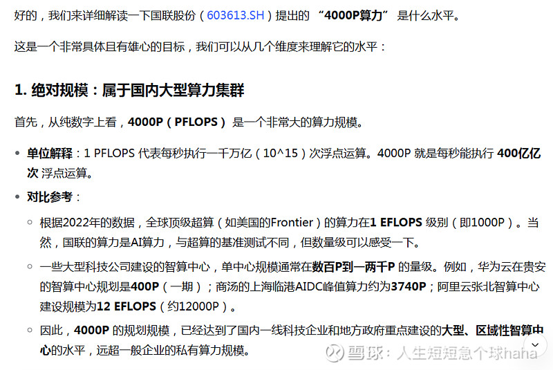 国联4000P算力已经建好交付,属于国内大型智算中心级别。在A股的工业互联网和产业互联网公司中,