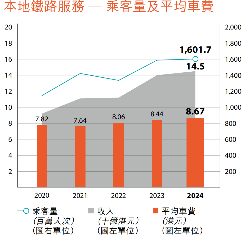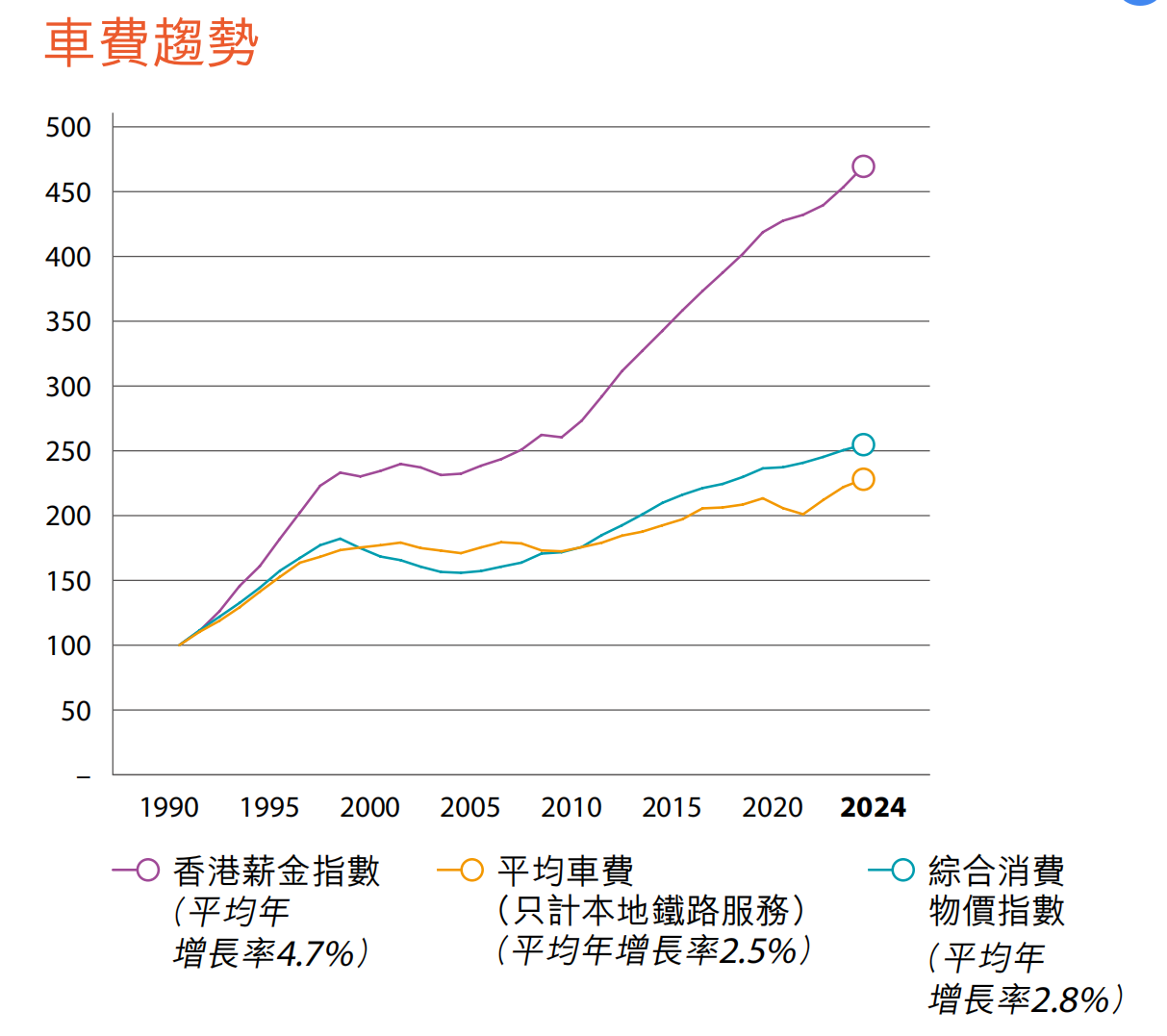 从1990年到2024年,差不多二十五年的时间,工资不到五倍,年均增长是4.7%;那么我们想想,如果我们的投资,能够做到分3%的息、留7%的增长,其实就很好了。而车费增长很缓慢——当然,它的收益还包括车站商业、住宅开发、商场运营。