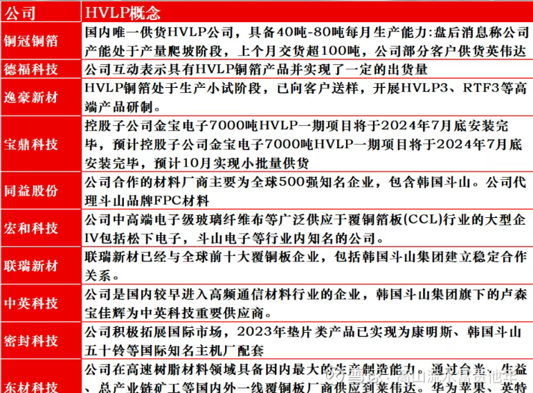问:HVLP铜箔是否与M7、M8等材料有对应关系?HVLP铜箔行业的整体空间如何?