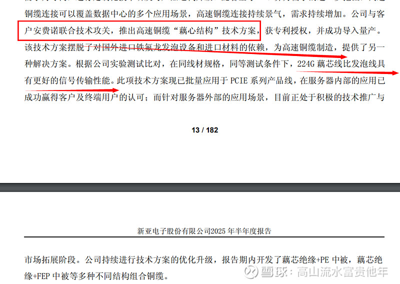 $新亚电子(SH605277)$ 我之前看好的逻辑是跟安费诺合作的藕芯铜缆,想象力在于成本更低传输更好关键是不受铁氟龙发泡设备的制约!业绩增长来看也不错(之所以增长不那么多应该是受新能源光伏业务拖累),这还是在藕芯铜缆没有量产情况下,当然业绩增长也是核心受益于:1)数据线材即高频高速铜缆连接线或高频高速数据 线材,包括 PCIe4.0/5.0/6.0/7.0 等,主要应用于 AI 人工智能服务器、液冷服务器、数据中心等 领域;2)机器人线缆 ,公司先后参与《机器人柔性电缆 测试技术规范》团队标准。