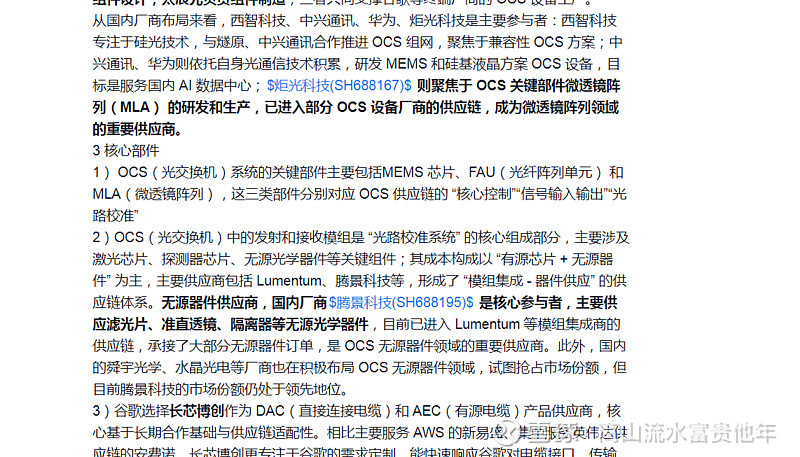 退而求其次一些今年刚起量没有扩产压力的新技术路径也行比如OCS交换机,scalt across:周一发文的OCS交换机 炬光科技 腾景科技 20cm的逻辑