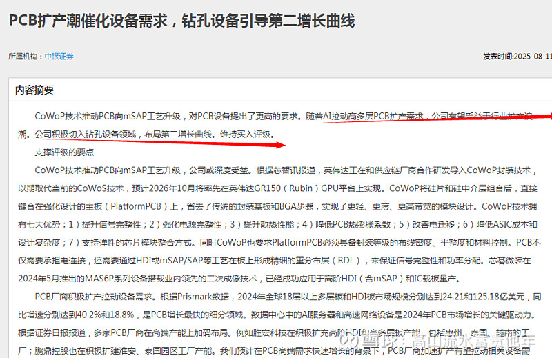 当然这里其实卢森堡的进展逻辑都要比铜冠铜箔更硬,但是铜冠铜箔名字里有铜箔两个字其实股性一直都是更好的德福科技调整下来会继续关注。这里面钻PCB设备只有芯碁微装还在低位,因为财报公布最晚,pcb曝光设备(国内龙一)追平世界先进水准,一季度切入钻孔设备正在验证(知道人不多),三季报钻孔设备有望放量:2024年5月公司发布钻孔系列新品MCD75T,可实时位置校准,实时孔型检测,实时能量监控,对位和补偿算法与LDI相通,提高了微孔与线路的位置精度。我们认为公司新款钻孔设备有望帮助公司切入新赛道,并进一步打开成长空间。#算力硬件集体高开,工业富联续创历史新高#