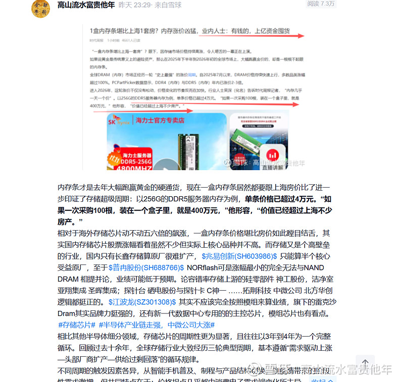 昨天晚上还在科普本轮存储周期前无古人,千万不要刻舟求剑用老眼光看这个周期性行业。