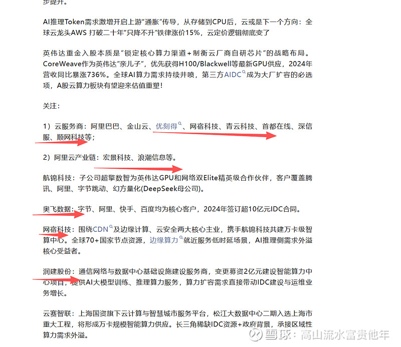 亚马逊AWS打破长达二十年的降价惯例,宣布部分GPU云实例涨价15%,H100租赁价格近期更是上涨约10%-20%,这一信号被市场敏锐捕捉并定性为“云端通胀”的前夜。与此同时,国内互联网大厂(腾讯、字节、百度)打响春节“红包大战”,10亿级现金的流量预期迫使大厂必须向第三方溢出算力需求。云计算行业拐点叠加事件催化是AI应用的铲子公司逻辑挺正的。而这里有两三家是我们长期跟踪业绩拐点的:25年$深信服(SZ300454)$ ,$网宿科技(SZ300017)$ 二季报已经见到业绩拐点;优刻得前年四季度见业绩拐点,青云科技减亏。最近算力租赁价格上涨与云通胀形成共振:宏景科技 润泽科技 大位股份