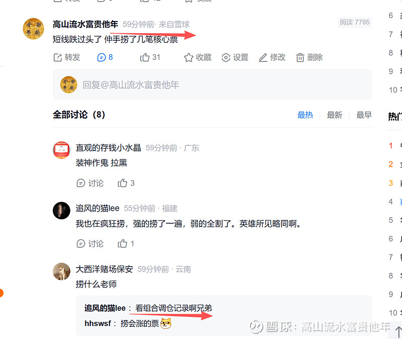 关于调仓啊,捞了之前看好的$锐捷网络(SZ301165)$ $欧陆通(SZ300870)$ 早上恐慌跌回起涨点了,有人说我最近快,其实我也不想啊,没买多久直接拉15%以上大阳线目前又是轮动市场,不卖就电梯。如果市场不是有外力干预加上海外局势不稳,当天又实在是涨得太多超过我的止盈点了,我也不会这么频繁