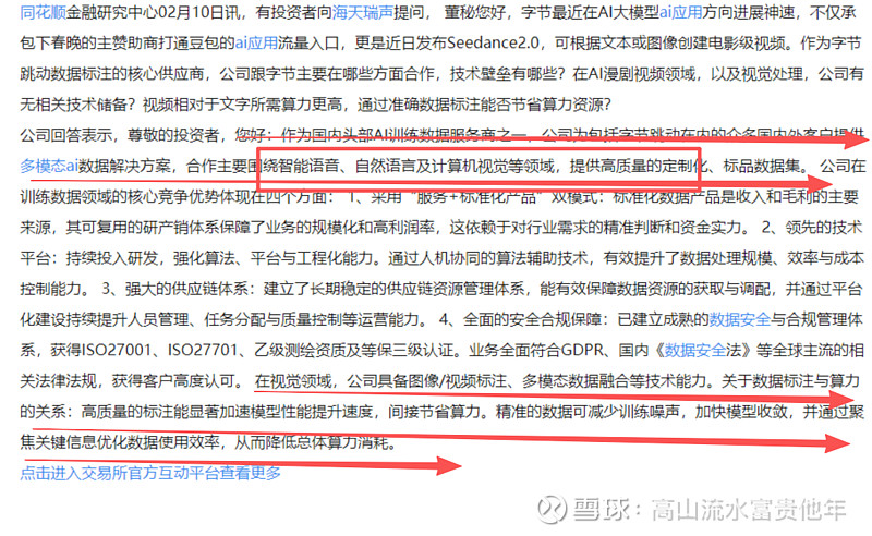 $海天瑞声(SH688787)$ 实锤字节视频标注铲子公司:在视觉领域,公司具备图像/视频标注、多模态数据融合等技术能力。关于数据标注与算力的关系:高质量的标注能显著加速模型性能提升速度,间接节省算力。精准的数据可减少训练噪声,加快模型收敛,并通过聚焦关键信息优化数据使用效率,从而降低总体算力消耗。