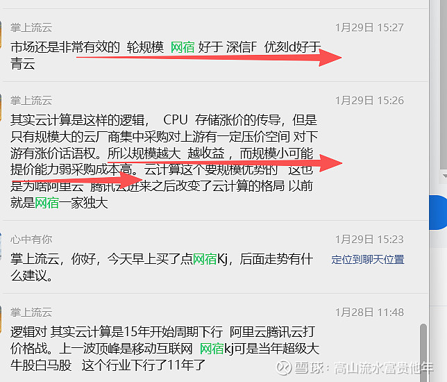 云计算这里我觉得逻辑是这样(截图是网宿科技没涨价之前判断):CPU 存储涨价的传导,但是只有规模大的云厂商集中采购对上游有一定压价空间 对下游有涨价话语权。所以规模越大 越收益 ,而规模小可能提价能力弱采购成本高。云计算这个要规模优势的 这也是为啥阿里云 腾讯云进来之后改变了云计算的格局 以前就是网宿一家独大。规模上就是 网宿科技最大 ,最先涨价,其次是优刻得与深信服(另一块业务是安全 市值大但是云计算业务不能按总市值,但安全业务也是核心铲子对标是版权安全 绿盟科技逻辑),最后是青云科技,青云科技好在市值小,不一定能涨价。