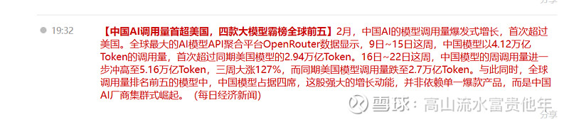 今天是一个值得铭记的时刻,中国只用了1/20的capex,就支撑了美国2倍的tokens,拿到了全球第一!