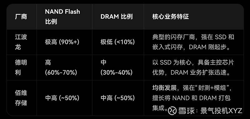 $江波龙(SZ301308)$ $德明利(SZ001309)$ $佰维存储(SH688525)$ 1. 江波龙:NAND Flash 为核心支柱