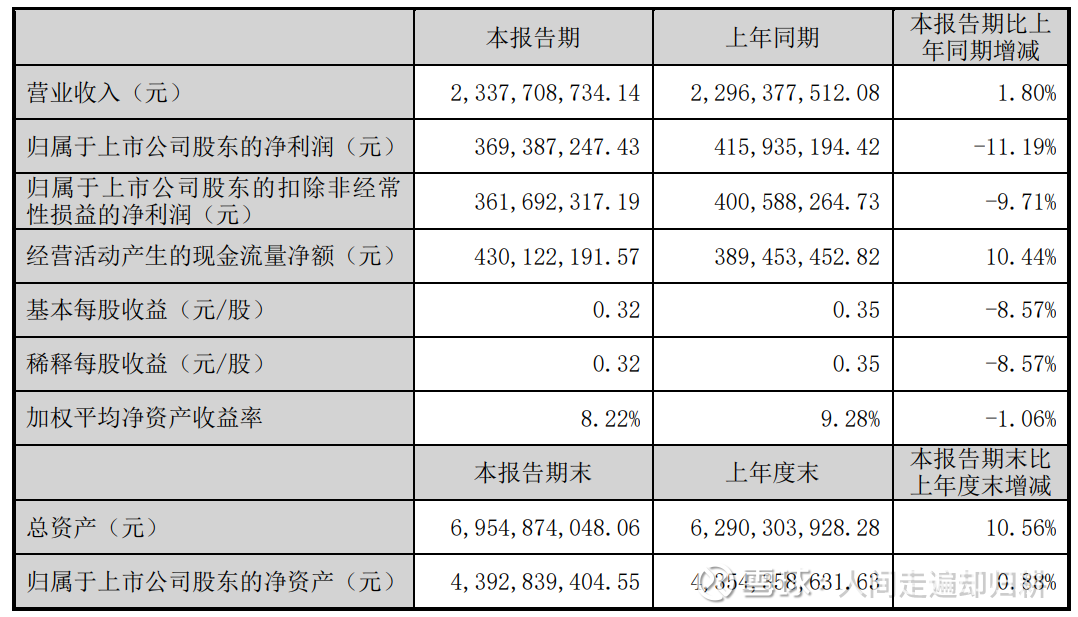 2025 年上半年,公司实现营业收入 23.38 亿元,同比增长 1.80%; 归属于上市公司股东的净利润 3.69 亿元,同比下降 11.19%;归属于上市公司股东的扣除非经常性损益的净利润 3.62 亿元,同比下降 9.71%。