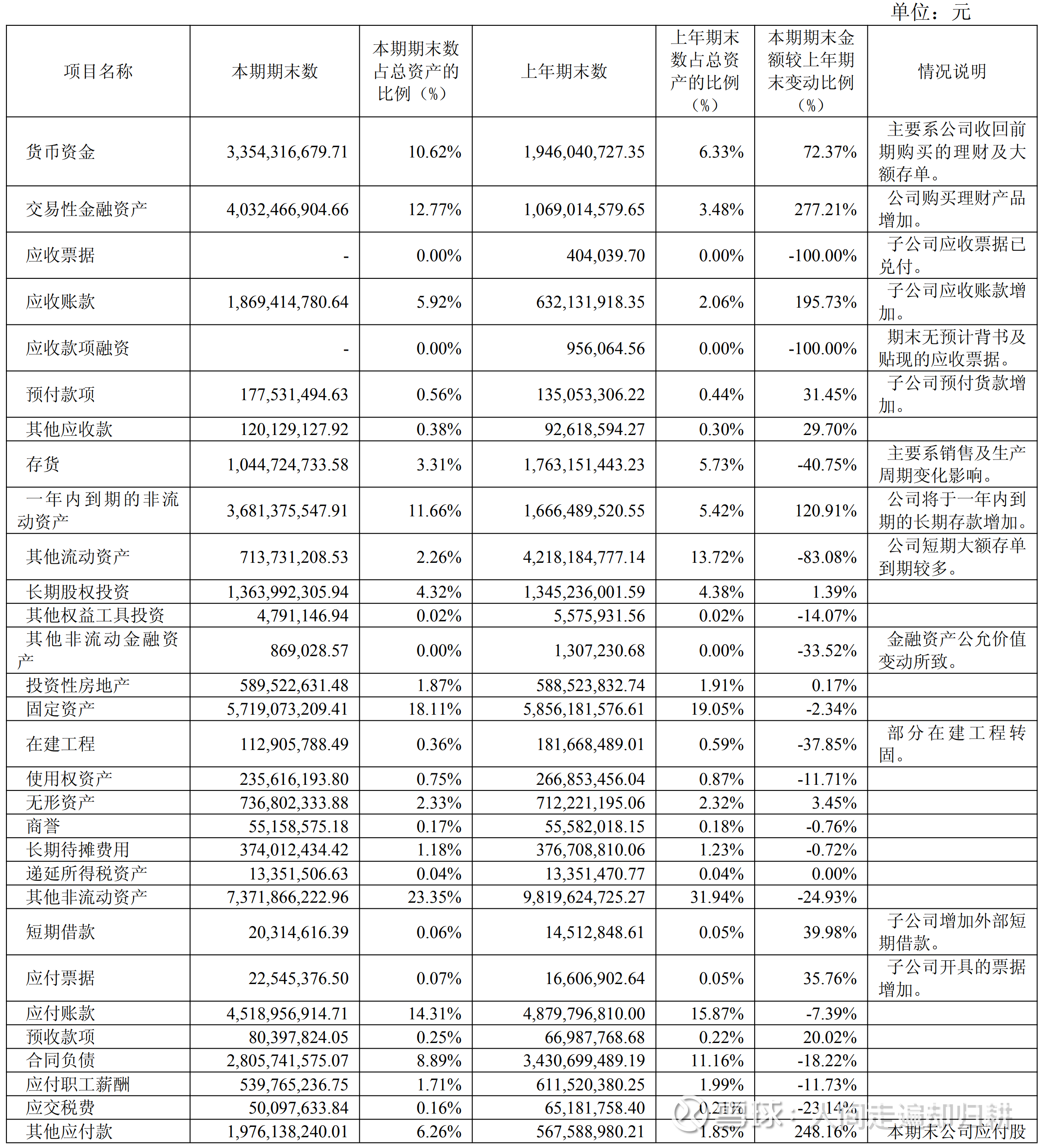 Notes:营收略降,利润总额略增,归属于上市公司股东的净利润增加了3.52亿元,主要来源于所得税差异,今年中期报告相比去年同期减少3.54亿元,扣除所得税影响,净利润也是持平的。经营活动现金流同比减少38.16%,主要由于子公司本期末有应收账款暂未收到。