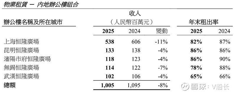 comment:这些信息反映了内地以及上海写字楼市场相当不乐观,上海恒隆下跌11%,昆明恒隆下跌4%,无锡恒隆写字楼下跌7%,年末出租率下跌10个百分点,至78%。