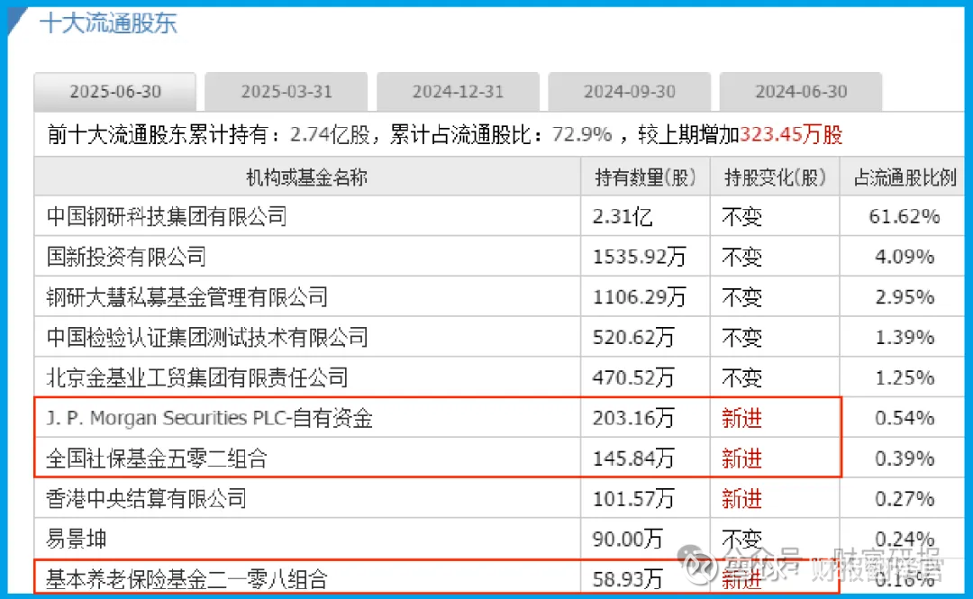 钢研的现金流,连摩根斯坦利都颇为看好——二季度刚被这只国际大投行大幅买入,就连社保基金也跟着来凑热闹当股东了。这信号,够强劲吧?
