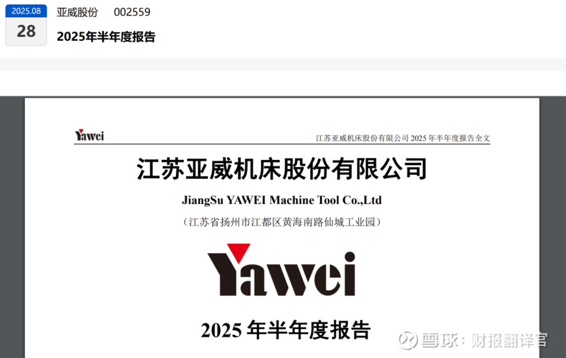 各位股友,今天咱们来聊聊亚威GF刚发布的2025年半年报。这家公司可不是什么新面孔,在装备制造领域已经深耕多年,主要做的是金属成形机床、激光加工装备,还有现在特别火的智能制造解决方案。$亚威股份(SZ002559)$