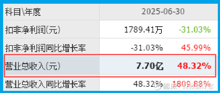 2025年Q2,公司营业收入7.7亿元,同比增长48%;