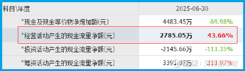 更令人疑惑的是,在公司亏损扩大的同时,其经营活动产生的现金流量净额却为2785.05万元,同比增长43.66%。