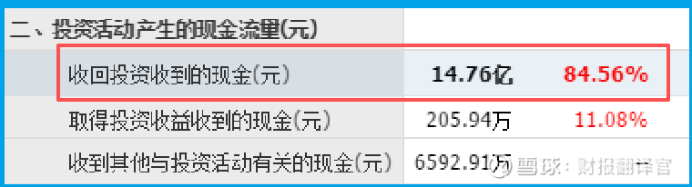 另一个值得注意的数据是,公司收回投资收到的现金为14.76亿元,同比大幅增长85%。