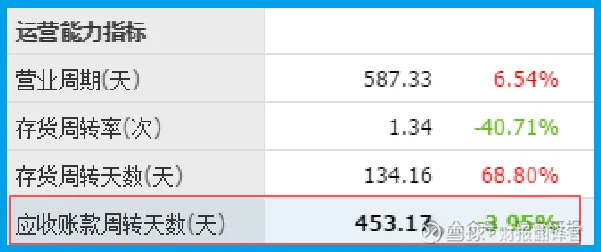 更蹊跷的是,公司销售回款时间(应收账款周转天数)高达453天,但同比还“加快”了4%——意思是,去年更惨,得等快500天才能收回钱……
