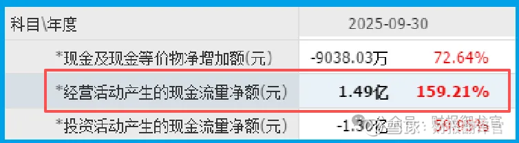 但当他翻到现金流量表时,却突然坐直了身体——经营活动现金流净额1.49亿元,同比增长159%!