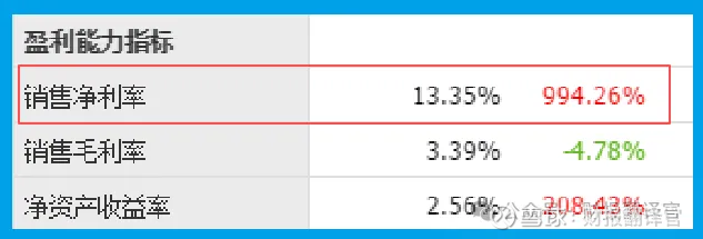 更值得玩味的是,公司净利率竟然高达13.35%,同比暴增994%。
