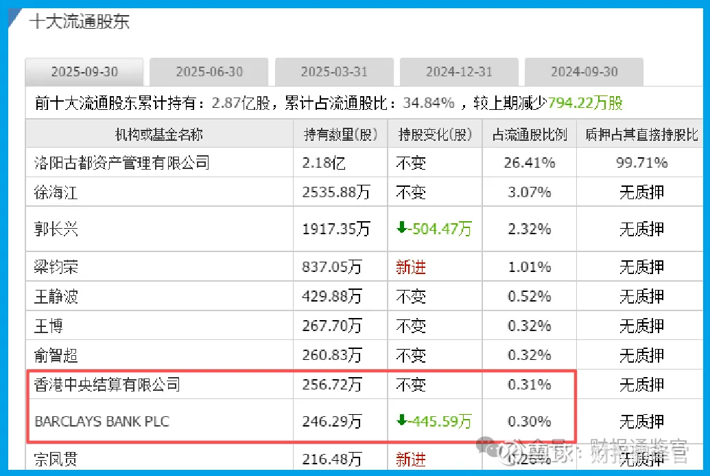 香港中央结算有限公司作为第八大流通股东,巴克莱银行作为第九大流通股东,这个信号极其重要。这两大资金向来以眼光毒辣著称,他们的同时入驻,绝不是偶然。