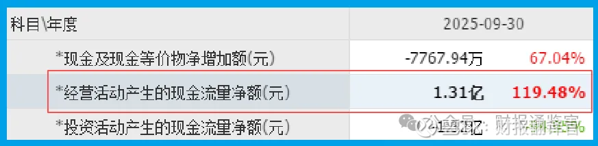 更值得玩味的是,在公司净利润同比微降2%的背景下,经营活动现金流净额达到1.31亿元,同比大增119%,这个数字甚至超过了当期净利润。