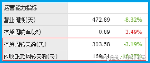 深入分析存货结构,我们发现了一个关键线索:存货周转天数304天,同比加快3%。这意味着公司的库存流转效率不降反升。