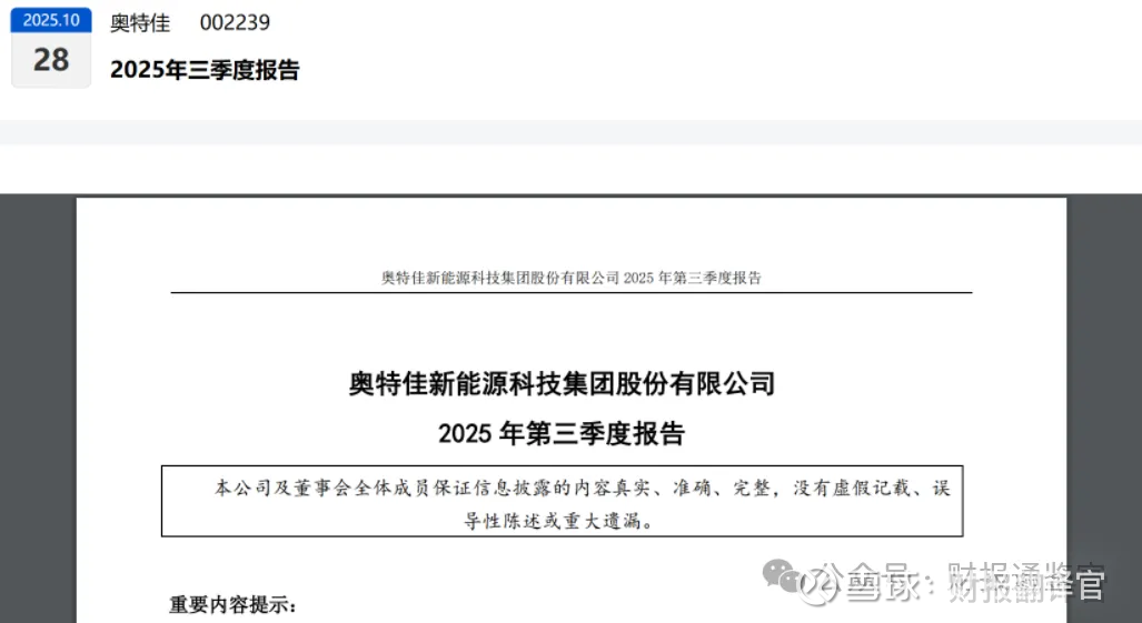 奥特佳这份三季报令人眼前一亮:经营活动现金流量净额10.48亿元,同比激增143%。更值得注意的是,这个数字是同期净利润的近10倍!$奥特佳(SZ002239)$