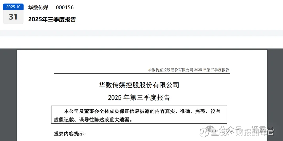 朋友们,今天咱们当一回财报侦探,一起破解华数传媒这份看似平淡却暗藏玄机的三季报。当财官仔细研读这份财报时,发现了三组令人费解的"矛盾数据"。$华数传媒(SZ000156)$