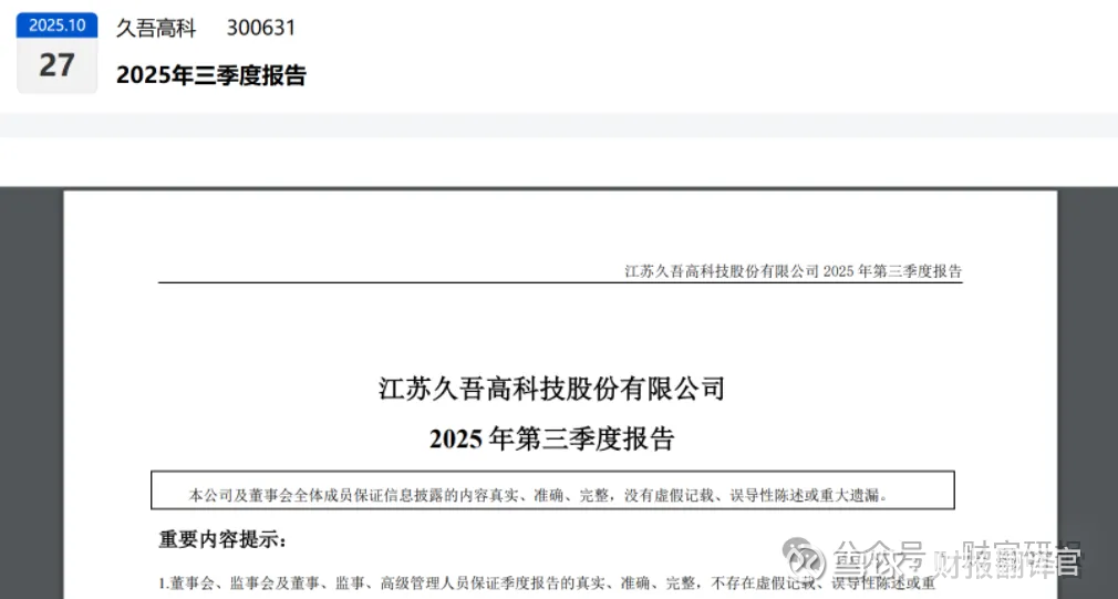 我是财官,一个喜欢从财报数字中寻找真相的观察者。今天我们要解开的谜题是:久吾高科。$久吾高科(SZ300631)$