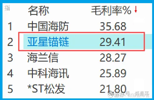 29.41%的销售毛利率,同比增长3%,在航海装备行业中排名第二。