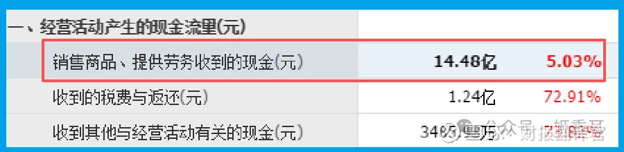除此之外财官还发现,公司销售商品收到的现金14.48亿元,同比增长5%,与营收规模基本匹配。