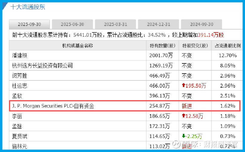 各位财报侦探们,今天我们要破解一桩资本市场的"悬案":当一家公司三季度业绩下滑9%,为何摩根大通却悄然潜入其前十大股东之列?