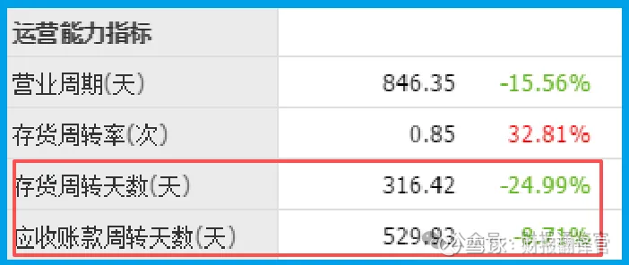 存货周转316天,同比加快25%,应收账款周转530天,同比加快9%,显示公司运营效率正在改善。