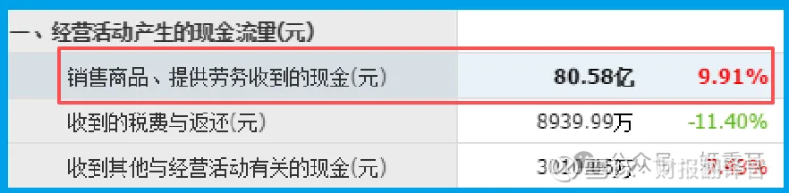 更值得关注的是现金流表现。销售商品收到的现金总额达80.58亿元,不仅同比增长9.91%,还高于营业收入。