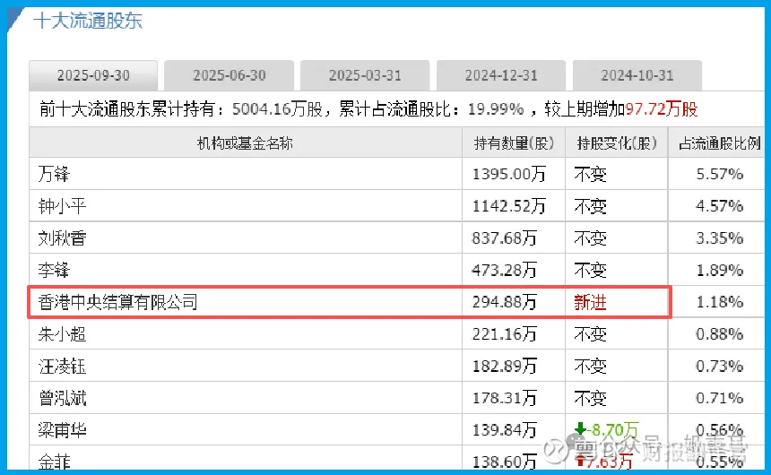 更引人注目的是,香港中央结算有限公司(北向资金) 在三季度新进成为公司第五大流通股东。这让不少投资者开始重新审视这家企业。